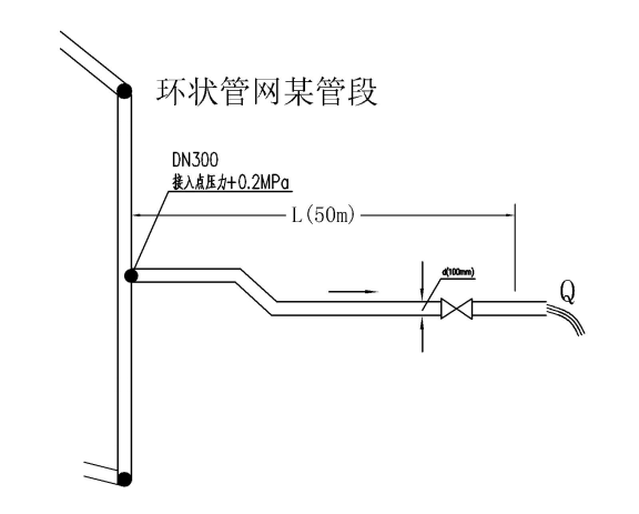 具體地談管網(wǎng)能力問題實際上是個體用戶的需求、管網(wǎng)能否滿足的問題。例如:某用戶申請供水,其居住小區(qū)有普通Ⅱ類住宅500戶,依建筑給水設計規(guī)范設計之秒流量(最大短時流量)為13L/S(47m3/h),根據(jù)地理位置應在某管段上(例如DN300管)開口接出取水管。而該管段是否有能力滿足需要?實際上這是一個管網(wǎng)水力計算的問題。管網(wǎng)的拓樸結(jié)構(gòu)有環(huán)狀和枝狀類別之分,水力計算方法毋需贅述。管網(wǎng)水力計算題目對于管網(wǎng)經(jīng)常性管理工作較差的供水系統(tǒng),可能會因基礎數(shù)據(jù)和運行數(shù)據(jù)不足,解題時有些困難。這可以通過測壓、測流、試驗等工作來獲取數(shù)據(jù),并逐步使管網(wǎng)管理工作科學、正規(guī)地完善起來。